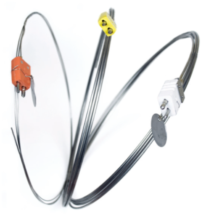 消耗式热电偶的元件上包覆着玻璃纤维、陶瓷纤维或聚合物等材料,通常以线卷的形式供货。这种形式让用户能够将金属丝切割成需要的尺寸,然后采用扭接或焊接方法将两根金属丝接合在一起制成热电偶。它们非常适合于一次性使用,比如温度均匀性测试或炉料热电偶(见图1)。