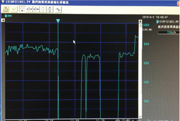 通过查阅DCS流量趋势,发现流量突然回零,(波动情况如下图1所示)