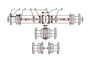 拉断阀的设计通常包括两个单向阀,能够在触发后自动密封分离的两端,确保流体不泄漏。其结构可能包括夹板、正反连接螺栓、调整螺母、拉断组件和钢丝绳等部件。