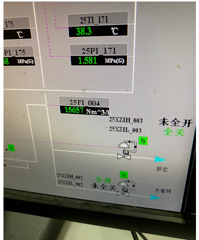 接工艺通知,压力变送器25FT-004显示偏低,中控指示15657nm3/h,现场查看变送器显示44.3%,该表正常范围应在17000-19000之间。如图