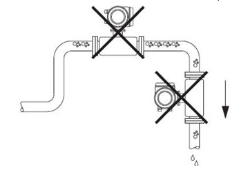 5.流量计安装在末端排空向下的方式,如下图(液体方式,气体与之相反)