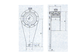 接触式楔块逆止器适用于大转矩,中、高速传动工况,当用于高速工况时常采用稀油润滑及特殊结构和材料的楔块。一般极限转速为400~1500r/min。在普通皮带机的使用中一般安装于减速机的低速轴上,其外形结构如图13-10所示,与普通滚柱逆止器、棘轮逆止器相比,在传递相同逆止力矩的情况下,具有重量轻、传力可靠、解脱容易、安装方便等优点。其允许最大扭矩通常能达到数十万牛.米以上,是大型带式输送机和提升运输设备上的一种理想的安全保护装置。