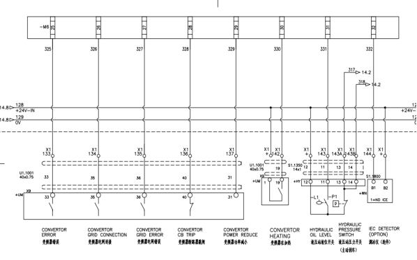 从图中可以看出液压站液位反馈至M6模块的331接线。