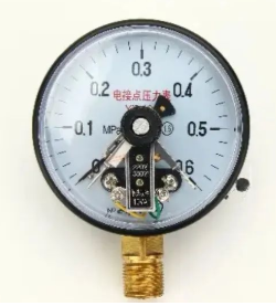 有时候现场的压力表还有远传功能,这就是压力表的升级玩法,在其基础上增加电接点装置。这样不单单是起到就地显示作用了,还有远传报警功能。这种升级玩法的表,与普通压力表明显的区别就是指针数量不同,其有三个指针,其中两个是静指针,用于报警上下限位报警设置,另外一个动指针用于压力的指示,当动指针越过这个两个静指针时就会发生相应的逻辑翻转,就会有信号输出给下一级的执行器来执行相应的“工作”。