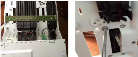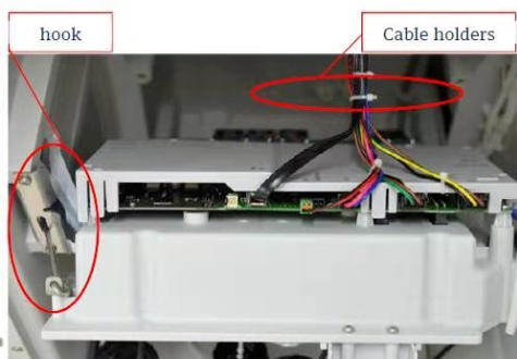 线缆经过KWZK-AD80系列底部穿线孔后,需要将经过KWZK-AD80系列里面liquid manage 后面进入到相应的端子上面。此时需要将liquid manager 拆下,螺丝拧下,liquid manager 倾斜。侧面有挂钩可以钩住liquid manager。