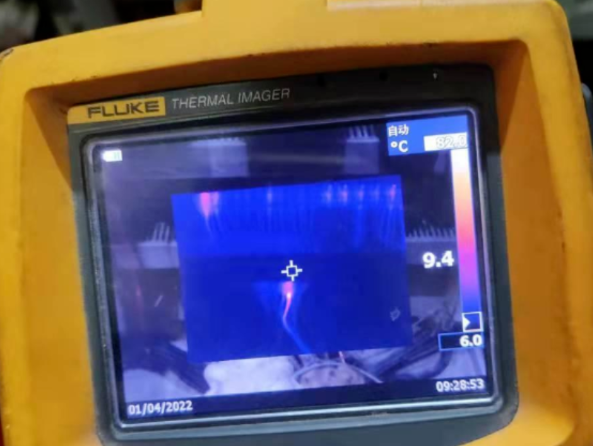 知道DC电源供电故障去维修室拿来万用表和热成像,直接到主电柜打开开关电源测量如图,发现正常的电压已经跌落很多。
